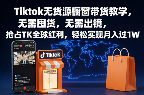 想做跨境电商却怕囤货压资金、库存积压风险?羡慕别人靠TikTok赚全球差价,自己却不懂平台规则、不会橱窗运营?现在,TikTok全球月活突破19亿,覆盖欧美、东南亚、拉美等核心消费市场,无货源橱窗带货凭借“零库存、低门槛、高利润”成为跨境变现新风口!这款「TikTok无货源橱窗带货教学」实战课,专为想抢占全球红利的创业者、副业者打造,全程聚焦“无需囤货”核心优势,从开店入驻到选品、运营、引流、变现全流程拆解,手把手教你玩转TikTok橱窗带货,轻松实现月入过1W的跨境盈利目标!