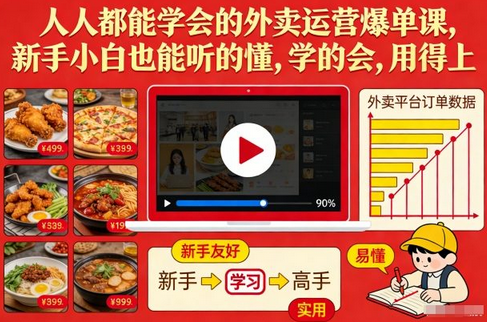 做外卖从来不是“专业人士”的专属,找对方法,新手小白也能轻松做爆店!这款人人都能学会的外卖运营爆单课,用最通俗的语言、最落地的方法,帮你打破新手门槛,真正做到听得懂、学得会、用得上,轻松开启外卖盈利之路!