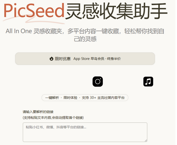 图片下载工具,适用于微博、小红书、推特、Ins、即刻等平台,输入内容链接即可解析,支持一键下载,免费使用,无需注册。 这个对带有文字的分享链接进行了适配,会自动提取首个链接,忽略掉文案。 传送门:https://picseed.com/