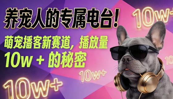 现在养宠赛道里藏着个超低调的搞钱机会——萌宠播客!专门做给养宠人听的专属电台,不用露脸、不用拍视频,一部手机就能做,有人单期播放量破10W+,粉丝涨起来后变现路子多到爆。别觉得“播客”门槛高,萌宠播客的核心根本不是“专业播音”,而是抓准养宠人的情绪共鸣。