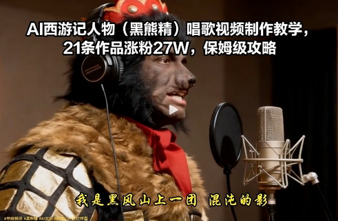 AI西游记人物(黑熊精)唱歌视频制作教学,21条作品涨粉27W,保姆级攻略