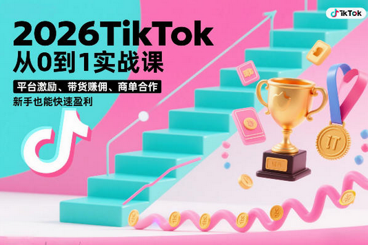 2026TikTok从0到1实战课,平台激励、带货賺佣、商单合作,新手也能快速盈利(3天直播课)