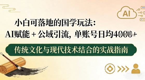 你是不是总觉得“国学创业”门槛高?得精通易经、论语、风水,得有专业资质,普通人根本碰不了?其实大错特错!现在靠AI赋能,所有专业壁垒全被砸烂——不用你啃晦涩的国学典籍,不用你写高深的干货文案,不用你拍复杂的讲解视频,AI一站式搞定所有内容生产,你只需要做好公域引流+私域标准化变现,就能接住国学赛道的巨大红利!