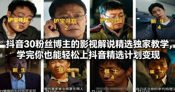抖音30万粉丝博主的影视解说精选独家教学,学完你也能轻松上抖音精选计划变现