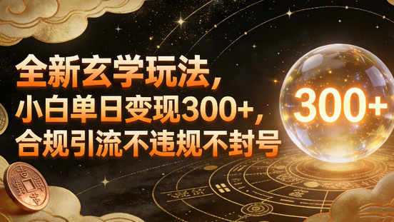 全新玄学玩法,小白单日变现3张+,合规引流不违规不封号