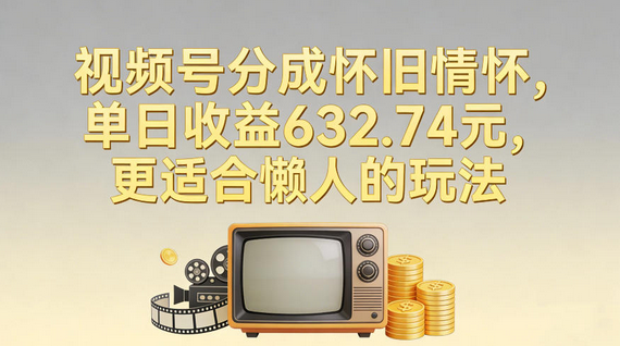 视频号分成怀旧情怀,单日收益632.74,更适合懒人的玩法
