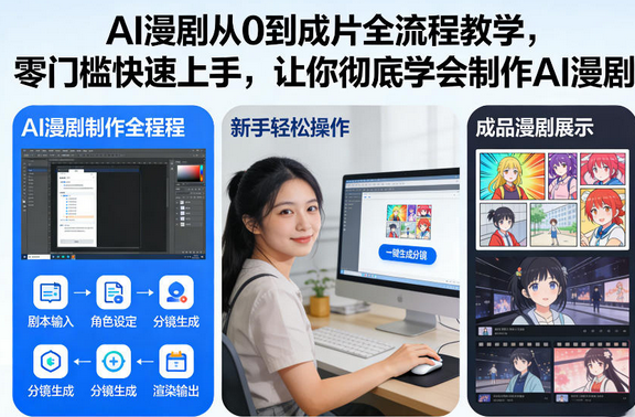 一直想做漫剧,却被高门槛拦住?不会手绘、不懂分镜、不会剪辑,连AI工具都不会操作,只能羡慕别人轻松出片?担心课程只讲皮毛,学完还是不会做,白白浪费时间?0基础小白,怕术语晦涩、流程复杂,迟迟不敢入局AI漫剧赛道?想靠AI漫剧做副业、涨粉变现,却找不到系统的全流程教学,只能碎片化摸索、反复踩坑?