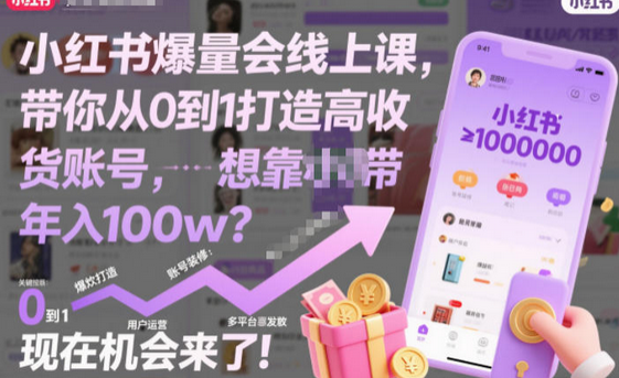 2026年的小红书,早已不是“靠运气爆火”的流量洼地,而是“靠方法盈利”的经营阵地!年入100W的带货目标,从来不是少数人的幸运,而是可复制的精细化运营结果。现在机会就在眼前,不用再为起号难、没流量发愁,跟着这门小红书爆量会线上课,你将从0到1掌握高收益带货的核心逻辑与实操方法,轻松解锁年入100W的变现密码,抢占小红书电商的黄金红利!