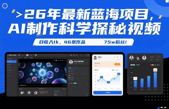26年最新蓝海项目,AI制作科学探秘视频,变现方式强到离谱,日收入1k,46条作品75w粉丝 项目介绍: 科普类视频有很多,今天分享的这个绝对是26年黑马级别蓝海玩法,细节具体看教程,只能说太炸裂了 下载地址: 本文隐藏内容 登陆 后才可以浏览