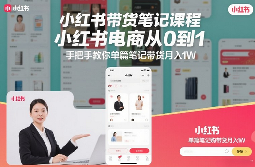 免责声明:站内部分内容由互联网用户自发贡献,该文观点仅代表作者本人。本站仅提供信息存储空间服务,不拥有所有权,不承担相关法律责任。展示内容仅作为学习交流使用,其版权归出版公司或原作者所有,本站不对所涉及的版权问题负责。如原作者认为侵权,请联系我们,我们会立即删除文章!蜗牛学社 » 小红书带货笔记课程,小红书电商从0到1,手把手教你单篇笔记带货月入1W