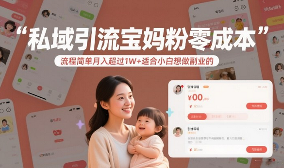 私域引流宝妈粉零成本流程简单月入超过1W+适合小白想做副业的