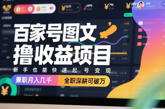 百家号图文撸收益项目,新手也能快速起号变现,兼职月入几千,全职深耕可破万