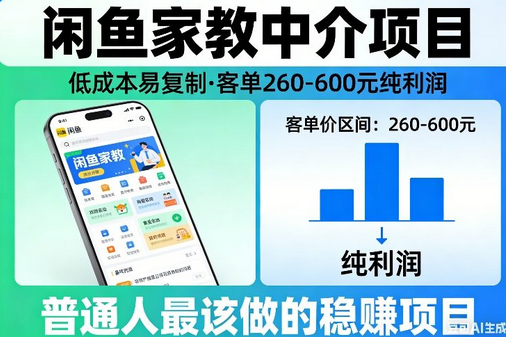 闲鱼家教中介项目,低成本易复制,客单260-600不等纯利润,这才是普通人最该做的稳賺项目