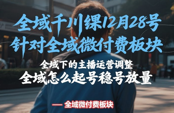 全域千川线下课12月28号,针对全域微付费板块,全域下的主播运营调整,全域怎么起号稳号放量