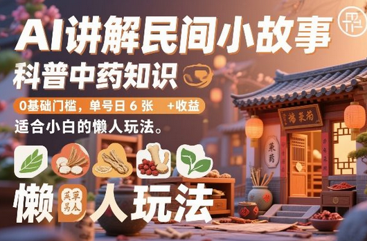 AI讲解民间小故事,科普中药知识,0基础门槛,单号日6张+收益,适合小白的懒人玩法 项目介绍: 中药科普玩法,中华文化瑰宝,项目自带流量,玩法属于懒人玩法,变现能力强,作品可以一稿多发 下载地址: 本文隐藏内容 登陆 后才可以浏览