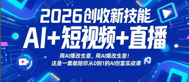 2026创收新技能AI+短视频+直播,用AI爆改生意,这是一套能陪你从0到1的AI创富实战课