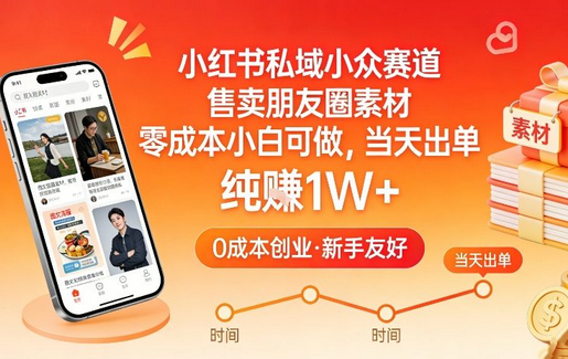小红书私域小众赛道,售卖朋友圈素材,零成本小白可做,当天出单,月入1W+