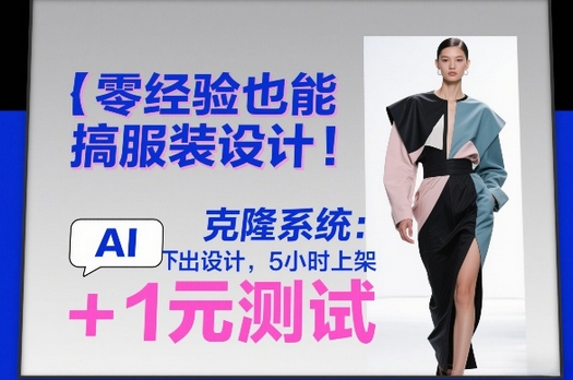 免责声明:站内部分内容由互联网用户自发贡献,该文观点仅代表作者本人。本站仅提供信息存储空间服务,不拥有所有权,不承担相关法律责任。展示内容仅作为学习交流使用,其版权归出版公司或原作者所有,本站不对所涉及的版权问题负责。如原作者认为侵权,请联系我们,我们会立即删除文章!蜗牛学社 » 零经验也能搞服装设计!克隆系统:AI点几下出设计,5小时上架+1元测试