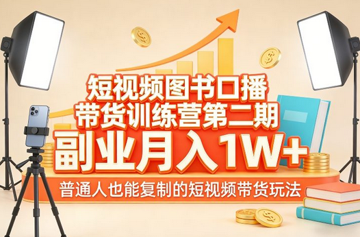 短视频图书口播带货训练营第二期,副业月入1W+,普通人也能复制的短视频带货玩法