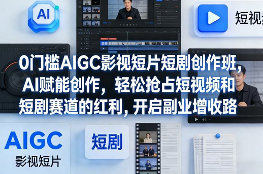 还在羡慕别人靠短剧、短视频轻松賺外快,自己却因“没基础、没设备、不会剪辑”望而却步?还在为副业选择发愁,想找一份时间自由、门槛低、见效快的增收方式?今天,这款专为新手打造的《0门槛AIGC影视短片短剧创作班》,就能帮你打破所有壁垒,用AIGC赋能创作,零基础也能快速上手,轻松开启副业增收新路径,把碎片化时间变成稳定收入!