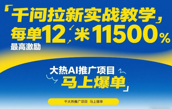千问拉新实战教学,每单12米,最高激励11500,大热AI推广项目,马上爆单
