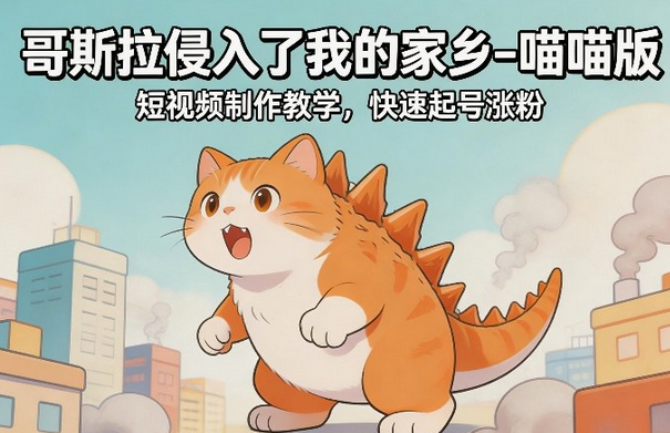 哥斯拉侵入了我的家乡–喵喵版短视频制作教学,快速起号涨粉