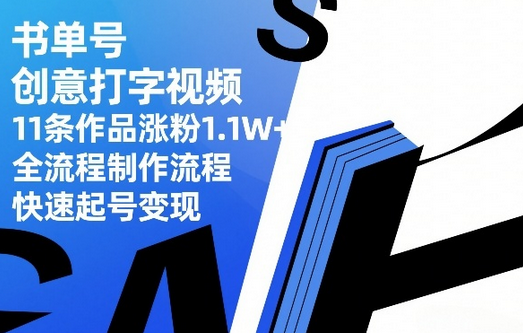 书单号创意打字视频,11条作品涨粉1.1W+,全流程制作流程,快速起号变现