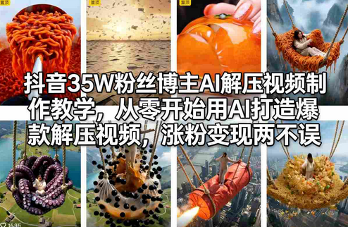 抖音35W粉丝博主AI解压视频制作教学,从零开始用AI打造爆款解压视频,涨粉变现两不误