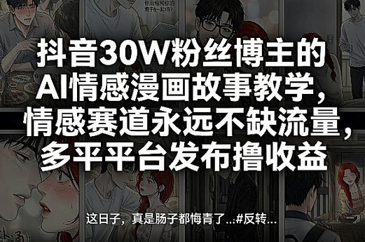抖音30W粉丝博主的AI情感漫画故事教学,情感赛道永远不缺流量,多平台发布撸收益!