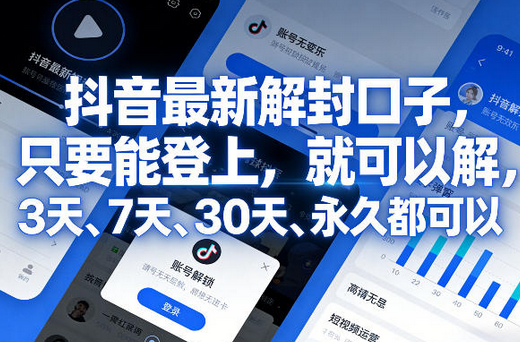 抖音最新解封口子,只要能登上,就可以解,3天、7天、30天、永久都可以