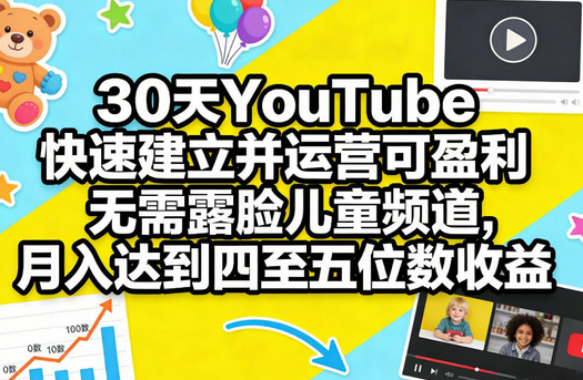 这是一套清晰、步骤明确的指南,帮助您在短短30天内建立并运营可盈利的儿童无露脸YouTube频道,实现月入四至五位数。