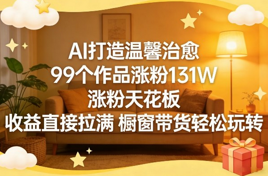 AI打造温馨治愈,99个作品涨粉131W,涨粉天花板,收益直接拉满,橱窗带货轻松玩转 项目介绍: 26年蓝海赛道,温馨吉卜力手绘风格,项目自带流量无需复杂构图,AI全程赋能,附保姆级拆解教程 下载地址: 本文隐藏内容 登陆 后才可以浏览