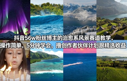 抖音56w粉丝博主的治愈系风景赛道教学,操作简单,5分钟学会,撸创作者伙伴计划跟精选收益