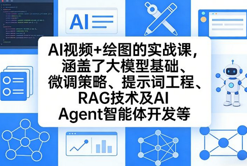 AI视频+绘图的实战课,涵盖了大模型基础、微调策略、提示词工程、RAG技术及AI Agent智能体开发等(更新)