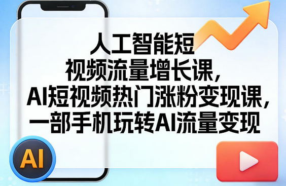 人工智能短视频流量增长课,AI短视频热门涨粉变现课,一部手机玩转AI流量变现