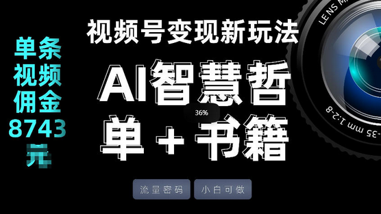 视频号流量密码,变现新玩法-AI智慧哲单+书单,单条视频佣金8743米 项目介绍: 该视频主要是讲解了视频号的新玩法,该玩法不仅流量高不违规,而且全程AI操作,效率高可批量可矩阵,变现方式多,适合新手小白做。 下载地址: 本文隐藏内容 登陆 后才可以浏览