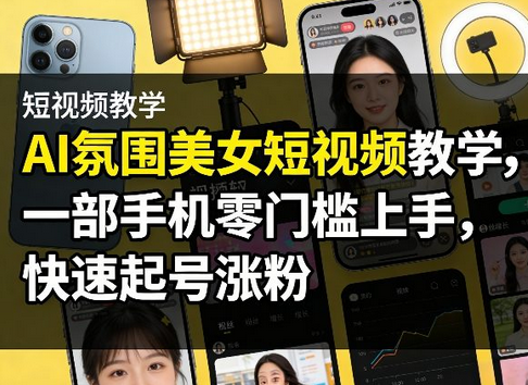 AI氛围美女短视频制作全套教学,无需专业设备、不用复杂后期,一部手机即可全程操作,从素材生成、氛围调色、剪辑配乐到发布运营一站式教学,零基础小白也能快速掌握,轻松制作高颜值流量短视频,适配短视频平台涨粉、变现、接单等多种玩法。