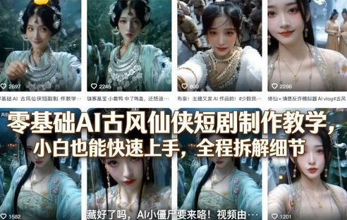 零基础AI古风仙侠短剧教学,直接制霸你的短视频账号!零门槛,超简单!