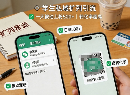 学生私域扩列引流,一天被动上粉500+,转化率超高