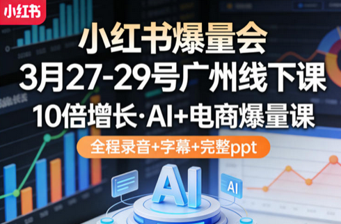 小红书爆量会3月27-29号广州线下课,10倍增长,AI+电商爆量课,全程录音+字幕+完整ppt