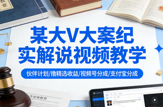 某大V大案纪实解说视频教学,可做伙伴计划、撸精选收益,视频号和支付宝分成计划均可