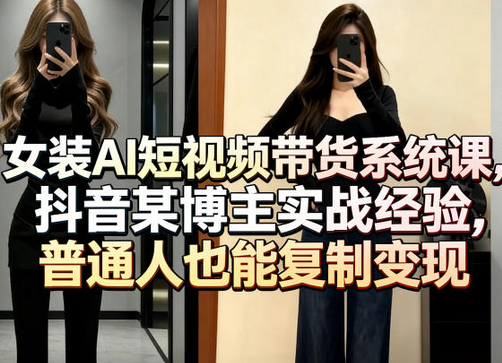 免责声明:站内部分内容由互联网用户自发贡献,该文观点仅代表作者本人。本站仅提供信息存储空间服务,不拥有所有权,不承担相关法律责任。展示内容仅作为学习交流使用,其版权归出版公司或原作者所有,本站不对所涉及的版权问题负责。如原作者认为侵权,请联系我们,我们会立即删除文章!蜗牛学社 » 女装AI短视频带货系统课,抖音某博主实战经验,普通人也能复制变现
