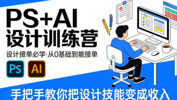 设计接单必学,PS+AI设计训练营,从0基础到能接单,手把手教你把设计技能变成收入