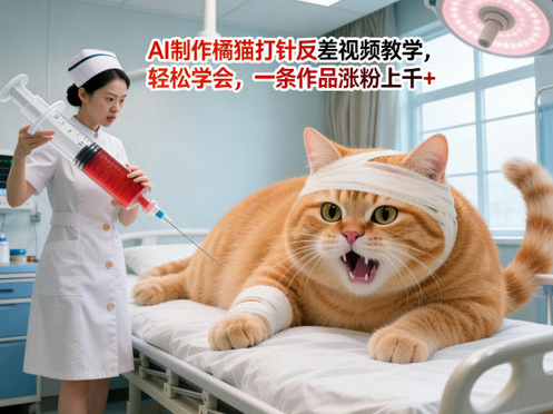 AI制作橘猫打针反差视频教学,轻松学会,一条作品涨粉上千+
