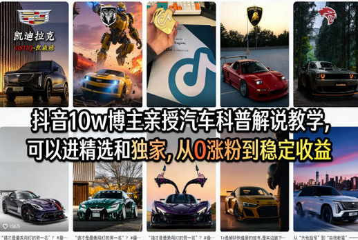 抖音10w博主亲授汽车科普解说教学,可以进精选和独家,从0涨粉到稳定收益(详细视频课程+1T素材)