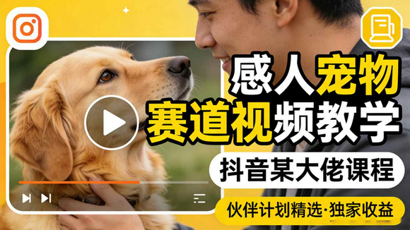 感人宠物赛道视频教学,抖音某大佬课程,可做伙伴计划精选独家收益