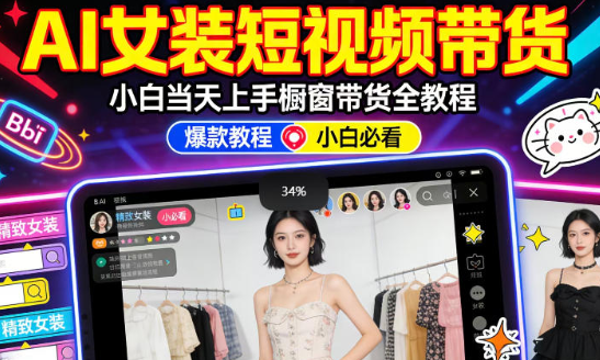 AI女装短视频橱窗带货:小白零门槛当天上手,高佣金爆款轻松賺!