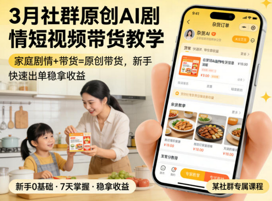 3月某社群原创AI剧情短视频带货教学,家庭剧情+带货=原创带货,新手也能快速出单稳拿收益