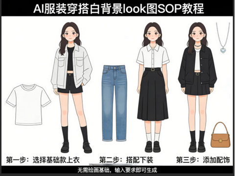AI服装穿搭白背景look图SOP教程