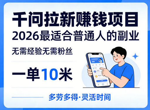 免责声明:站内部分内容由互联网用户自发贡献,该文观点仅代表作者本人。本站仅提供信息存储空间服务,不拥有所有权,不承担相关法律责任。展示内容仅作为学习交流使用,其版权归出版公司或原作者所有,本站不对所涉及的版权问题负责。如原作者认为侵权,请联系我们,我们会立即删除文章!蜗牛学社 » 一单10米,不少人都在找的千问拉新賺钱项目,无需经验无需粉丝,2026最适合普通人副业